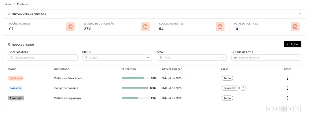 Como falamos, se basear apenas no indicador visualização x aceite é um grande erro. Isso porque esse indicador só mostra que a pessoa colaboradora viu o documento, mas não traz um indício de que o código está sendo respeitado. Embora o aceite digital seja o primeiro passo para a conformidade legal, ele é um indicador de leitura, não de comportamento.